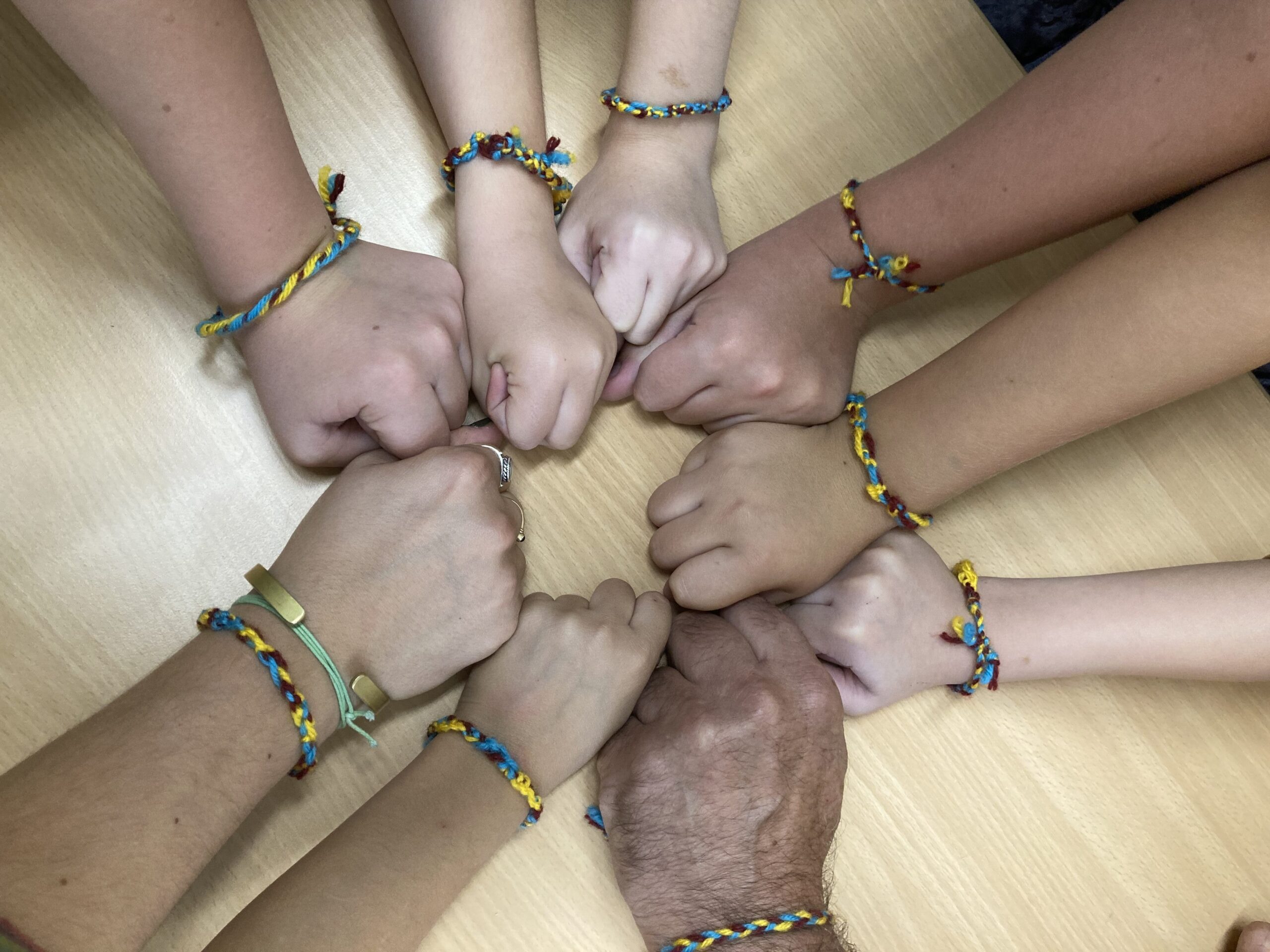 Die 1F knüpfte im technischen und textilen Werkunterricht Freundschaftsbänder. Jedes Band wurde ein wunderschönes Unikat, was wir euch deshalb nicht vorenthalten wollten.
