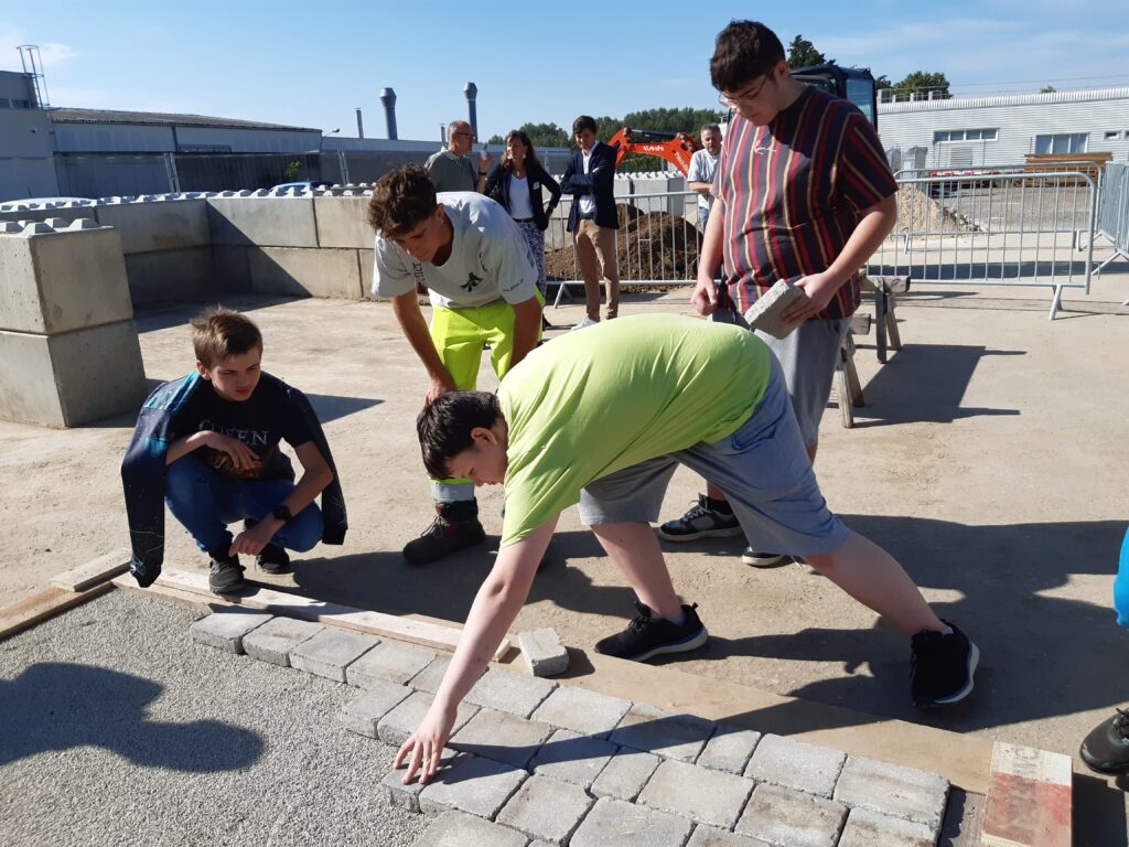 Beim Arbeiten mit dem Löffelbagger, Pflastern und Kabel einziehen zeigten manche nicht nur Interesse, sondern auch durchaus Geschick.